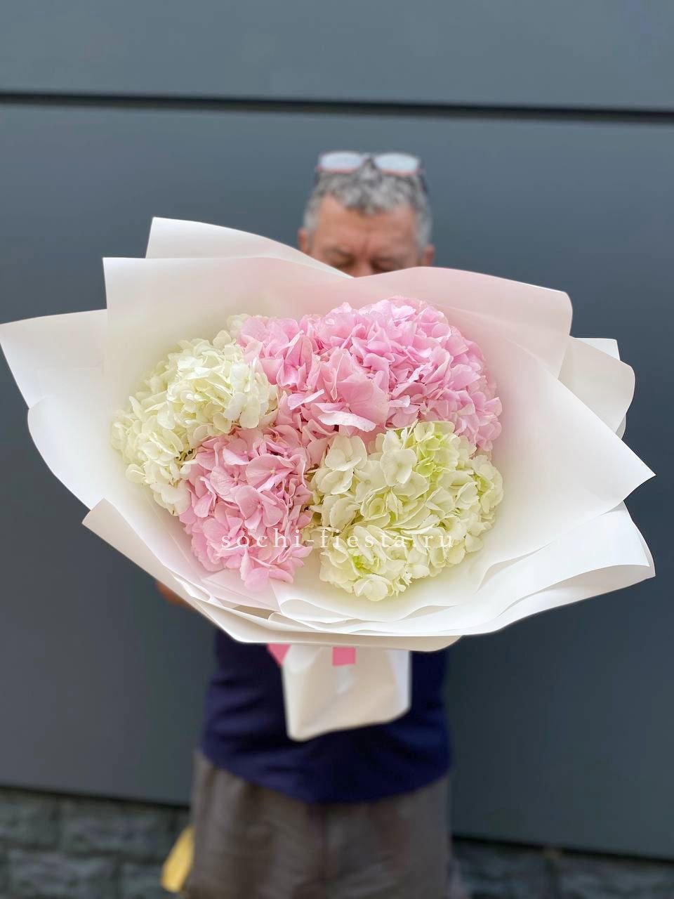 гортензия - 5 шт., лента, дизайнерская упаковка.
