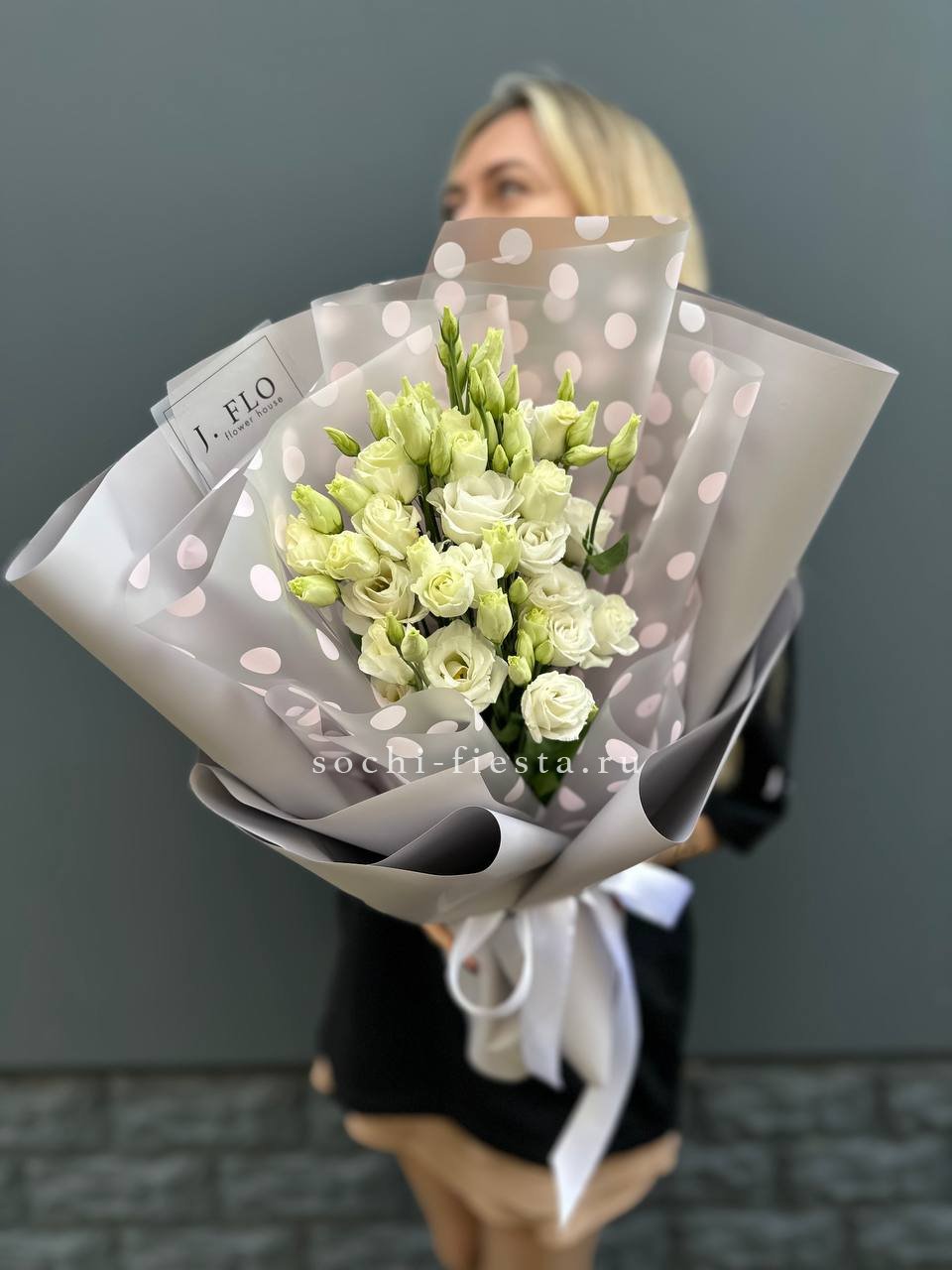 эустома - 21 шт., лента, упаковка фоамиран. Изначальная цена указана за букет Мини эустом- 7 шт.  Стандарт: 21 шт. эустомVIP: 41 шт.