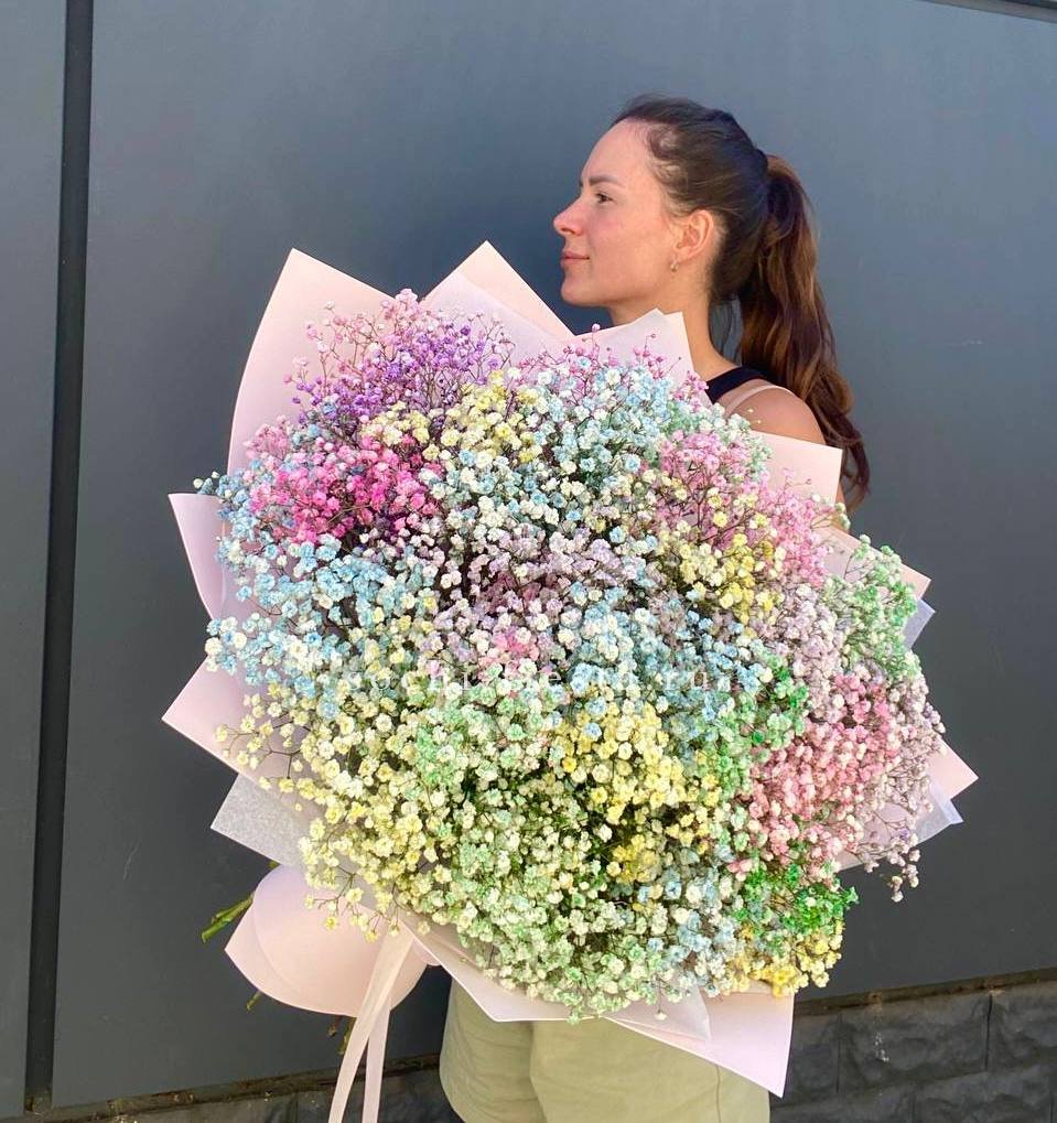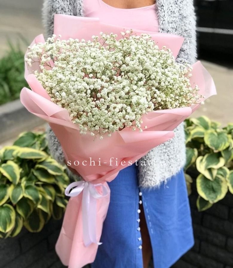 Воздушное облако из мелких соцветий создает объёмную текстуру и мягкий силуэт. Двадцать пять веток гипсофилы собраны в пышную композицию, которая наполняет пространство лёгкостью и свежестью.
