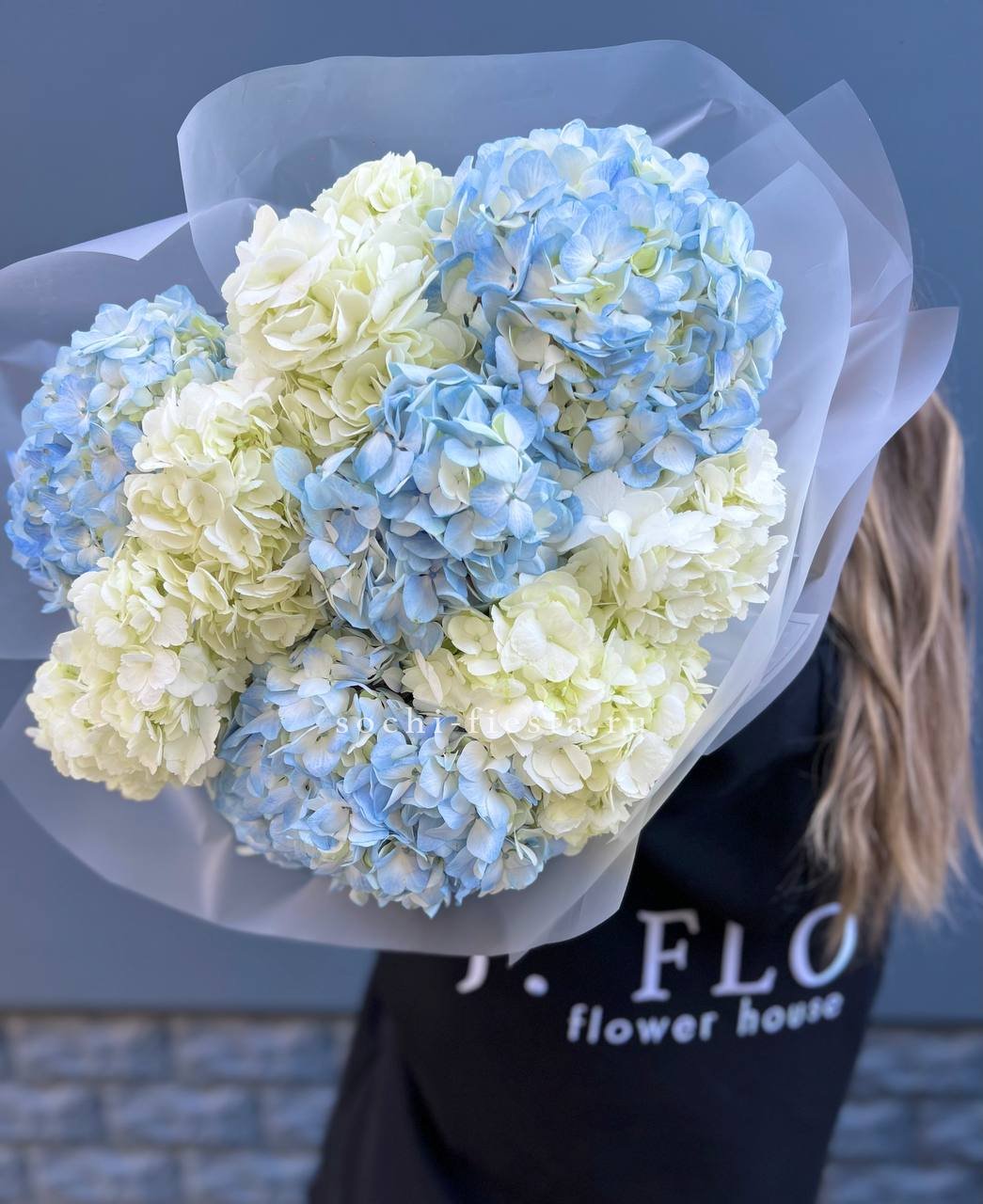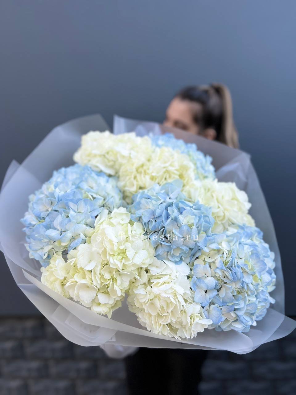 гортензия - 11 шт., лента, дизайнерская упаковка.