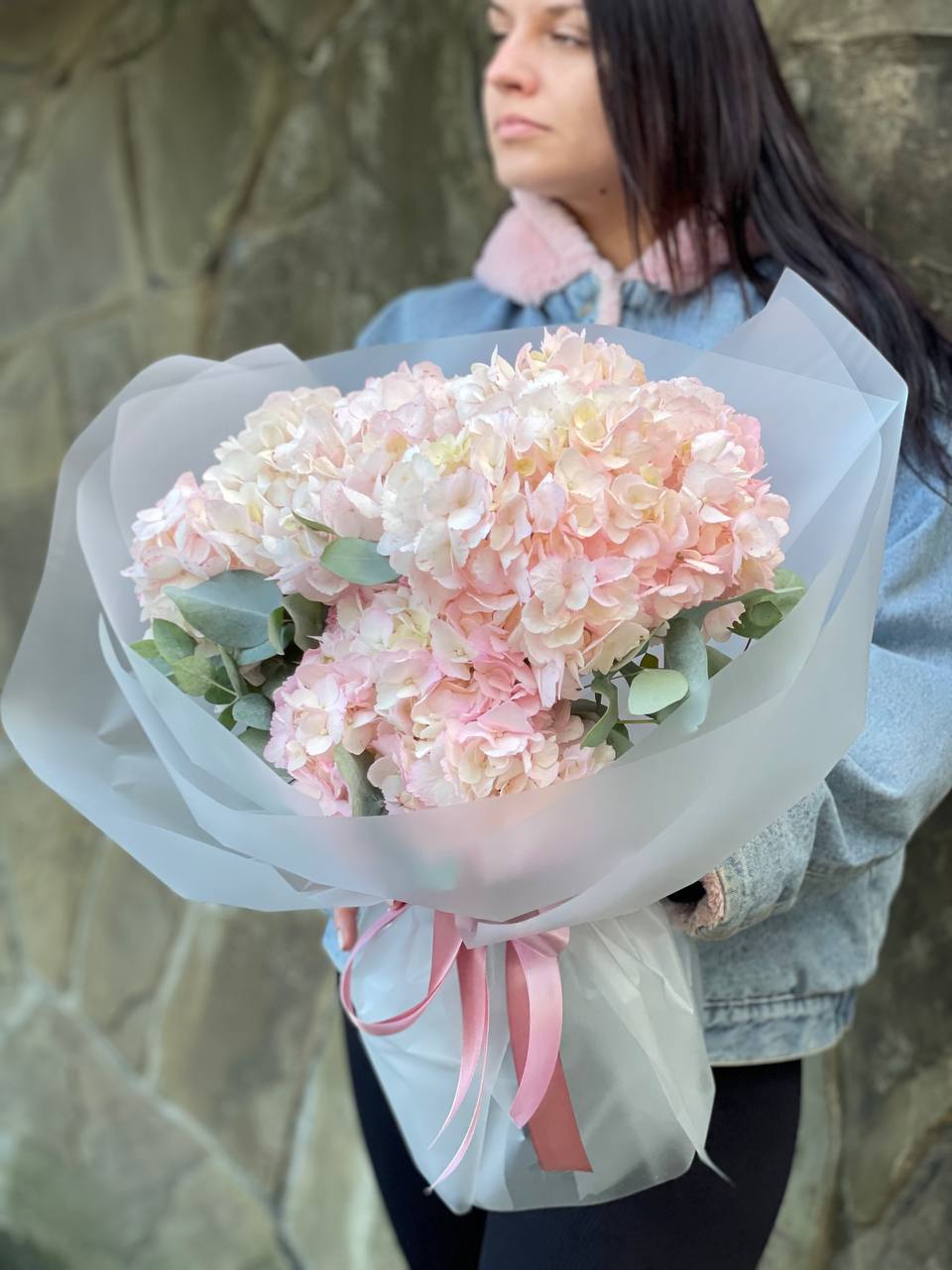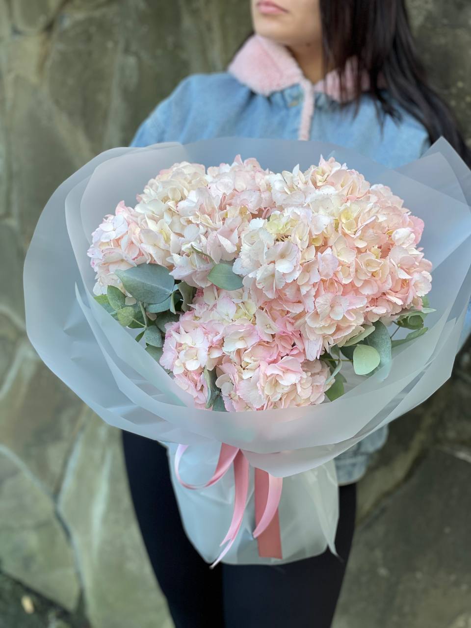 гортензия - 11 шт., лента, дизайнерская упаковка.