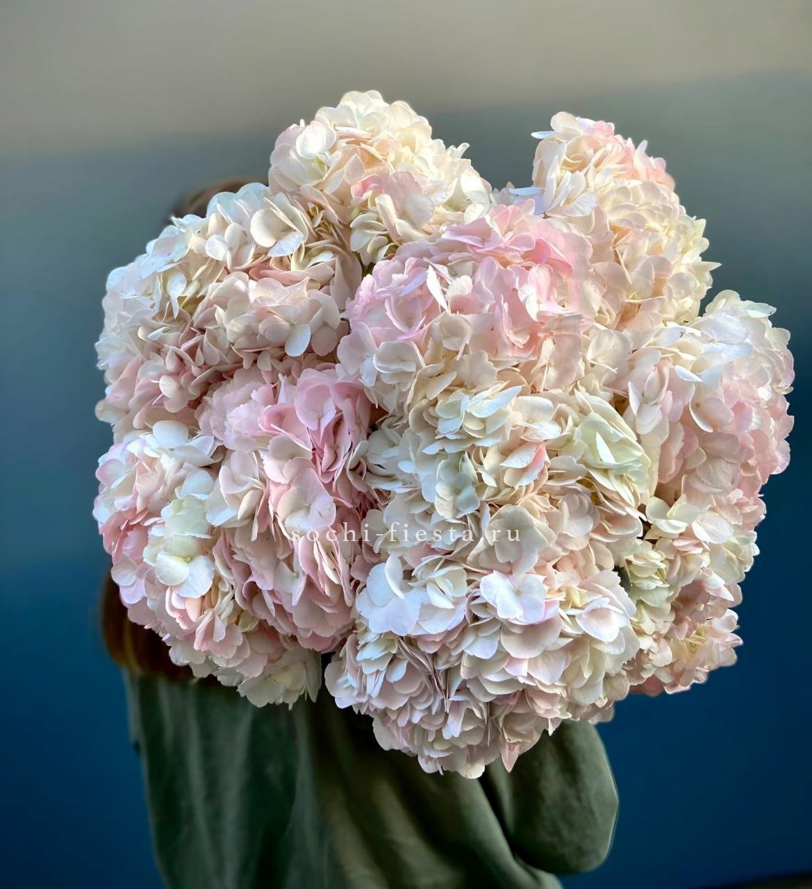 гортензия, лента, дизайнерская упаковка Цвет гортензии на выбор