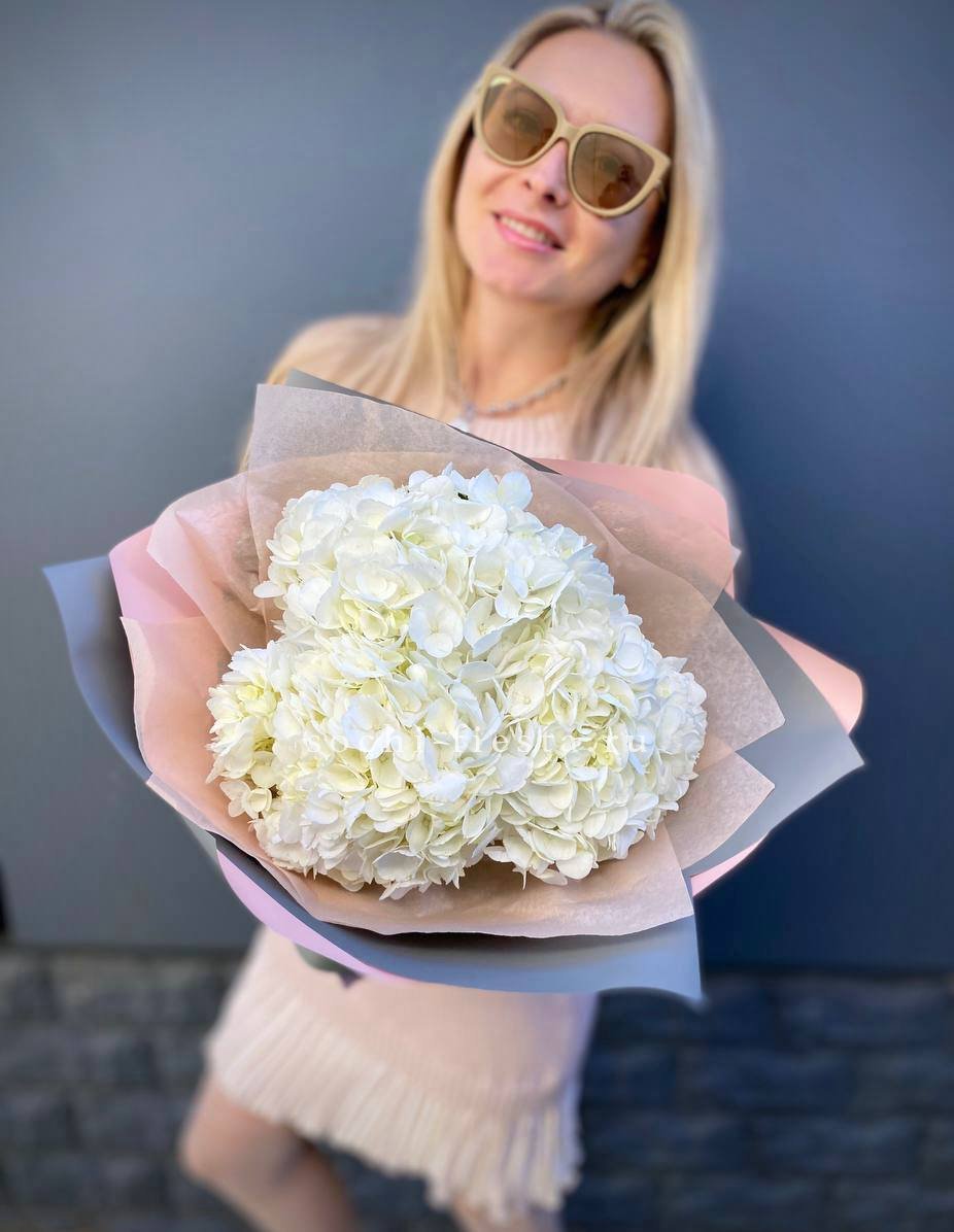 Для заказа товара "Букет из трёх белых гортензий" с доставкой в Дзержинске нажмите в корзину