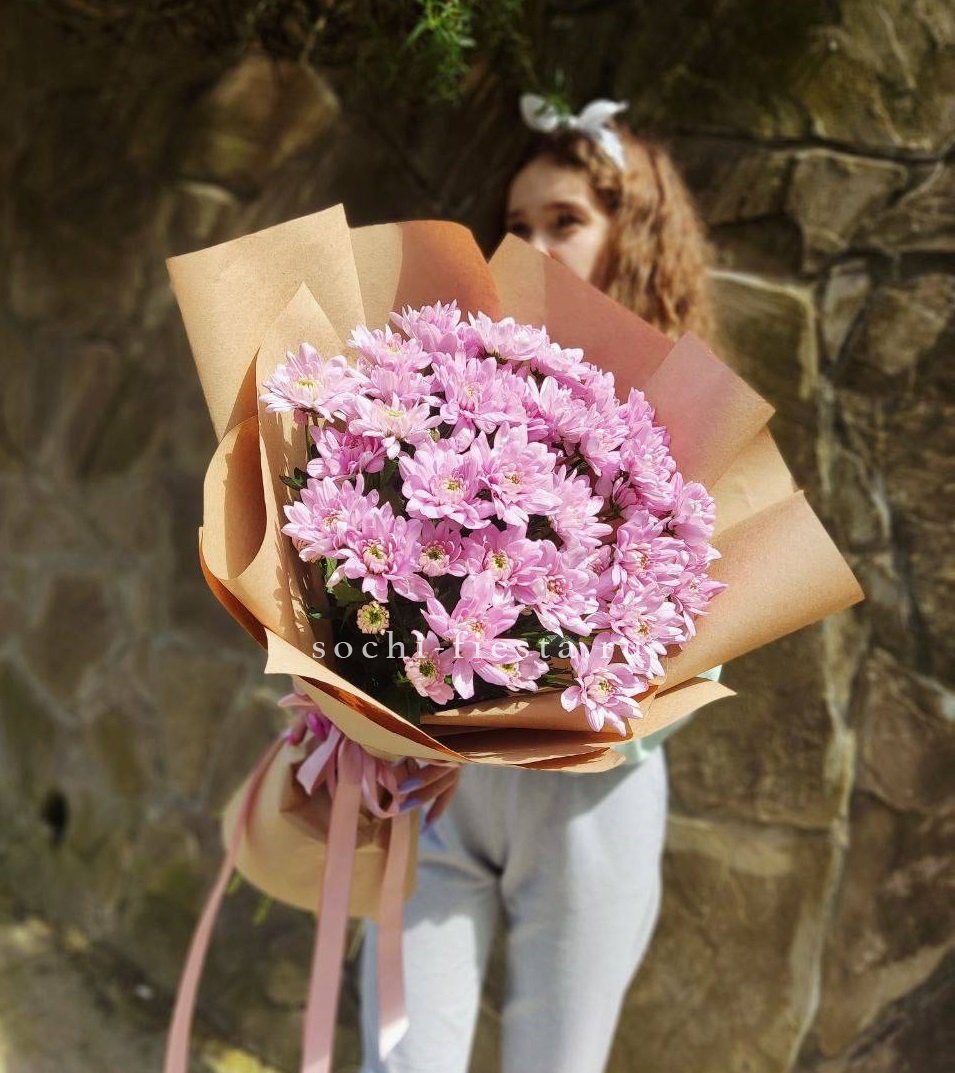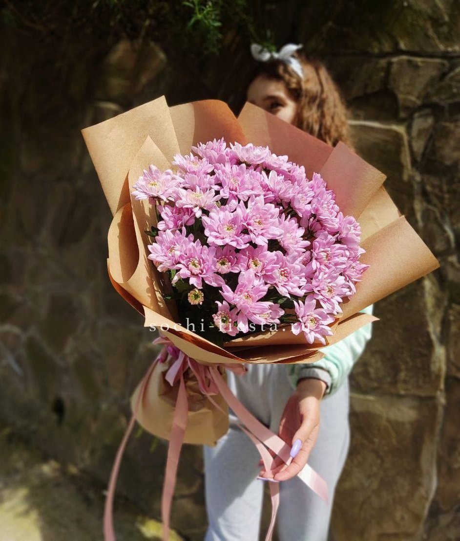 хризантема одноголовая 7 шт., лента, дизайнерская упаковка.