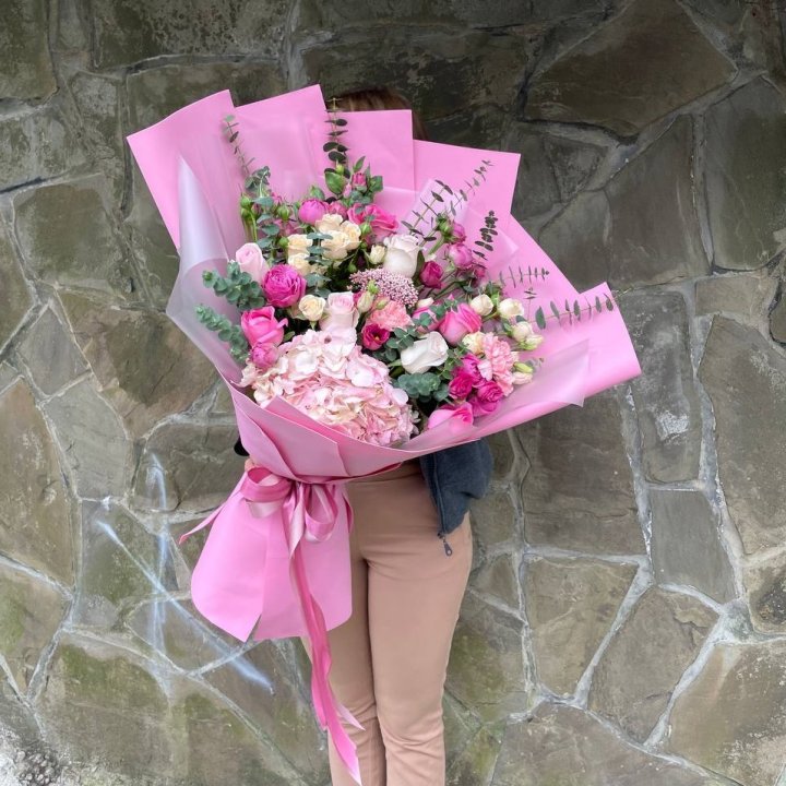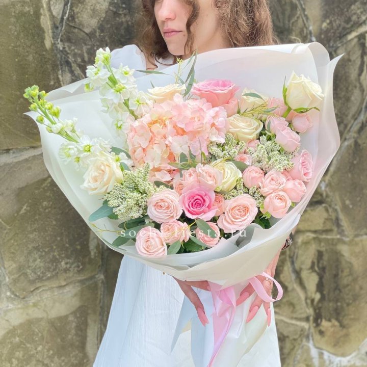 - Редкий состав — David Austin, ранункулюс, анемоны, сезонные пионы.