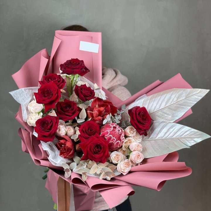 - Редкий состав — David Austin, ранункулюс, анемоны, сезонные пионы.