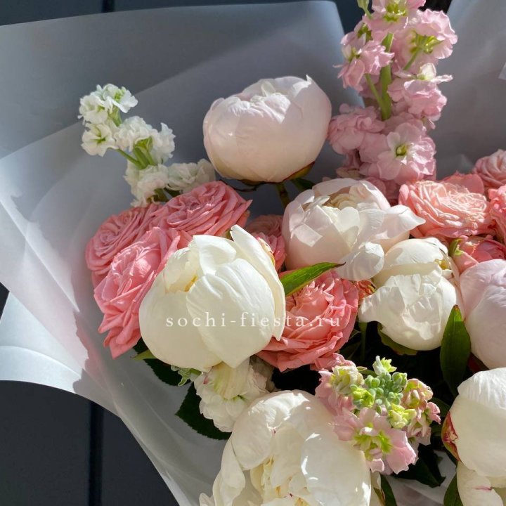 - Редкий состав — David Austin, ранункулюс, анемоны, сезонные пионы.