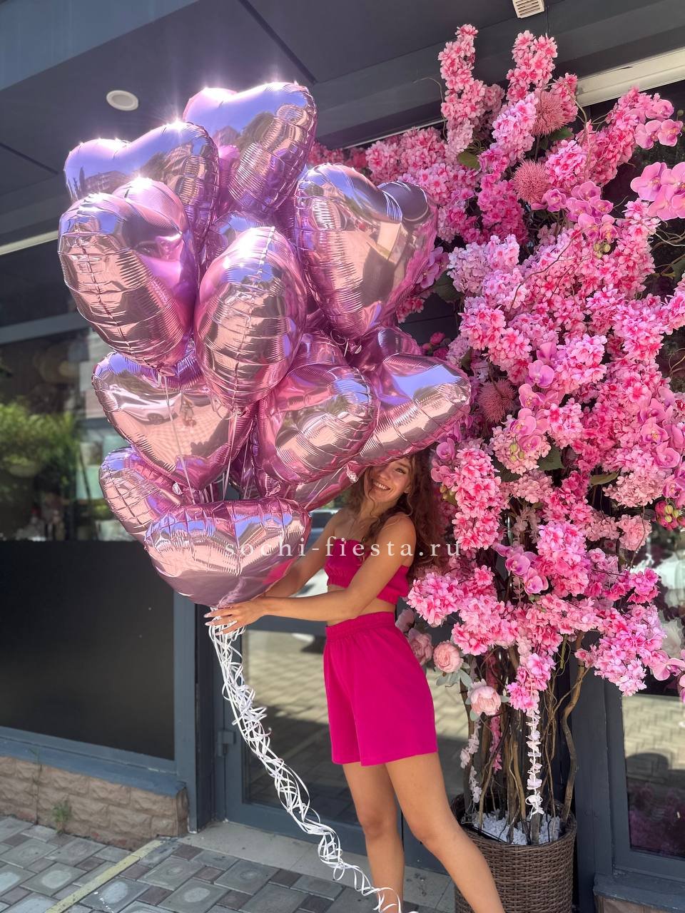 19 фольгированных сердец. Все шары мы предварительно обрабатываем специальным составом Highfloat, обеспечивая им длительный срок полета.