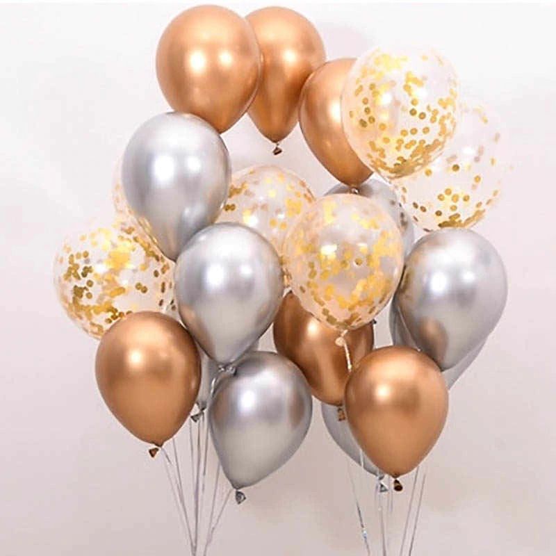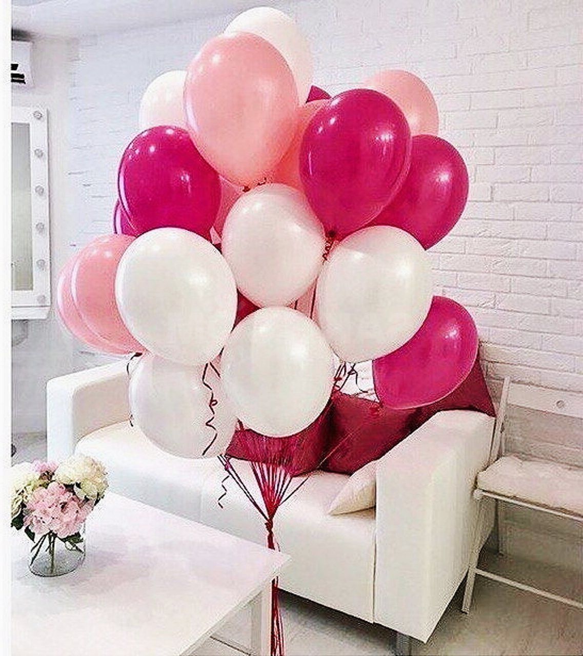 набор воздушных шаров включает в себя 2 фонтана: 2 шт. фольгированных звезд розового цвета, 6 шт. латексных шаров белого цвета, 4 шт. латексных шаров розового цвета, 6 шт. хромированных шаров розового цвета, 6 шт. шаров с наполнением конфетти, грузик. Все шары мы предварительно обрабатываем специальным составом Highfloat, обеспечивая им длительный срок полета.