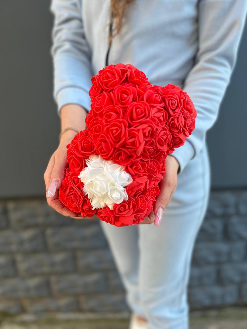 медведь из PE материала фоамирана (цвет красный с белой сердцевиной). Доставка данной товарной единицы бесплатна при условии её заказа с цветами.