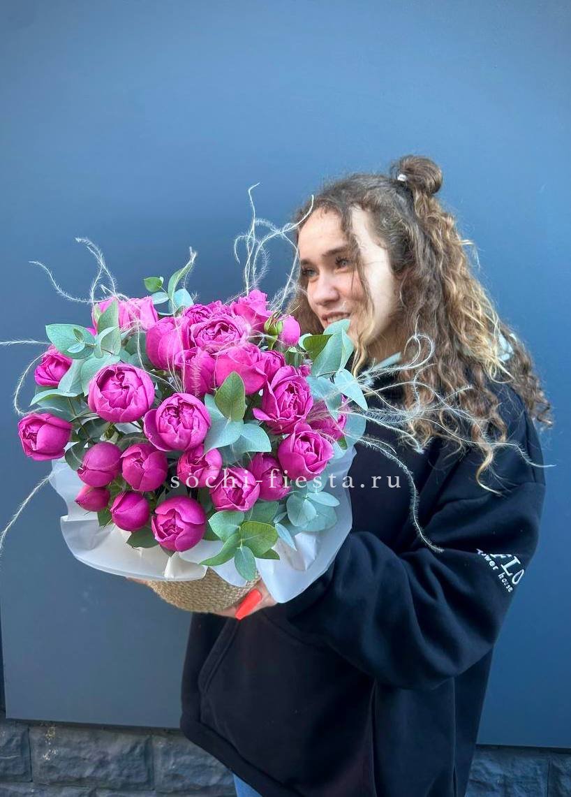 Для заказа товара "Пионовидные розы в джутовом кашпо " с доставкой в Дзержинске нажмите в корзину