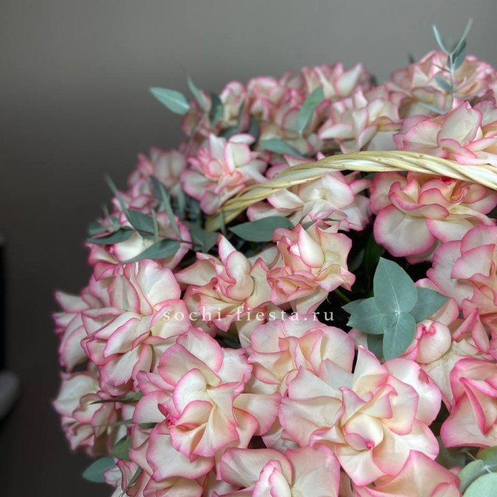 торжественная именинная цветочная корзина с розами куполом для поздравления в российском городе