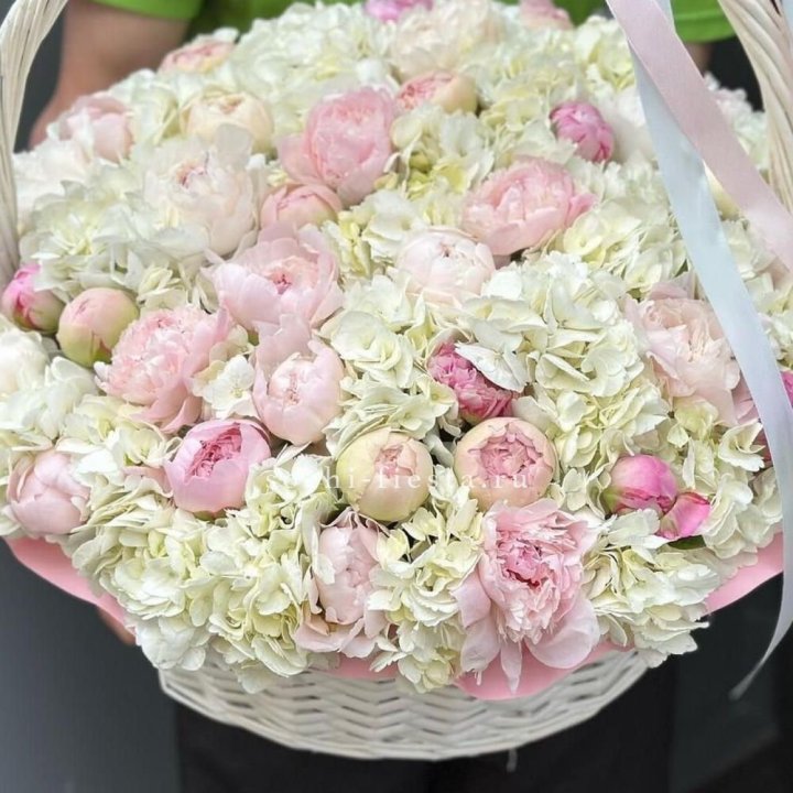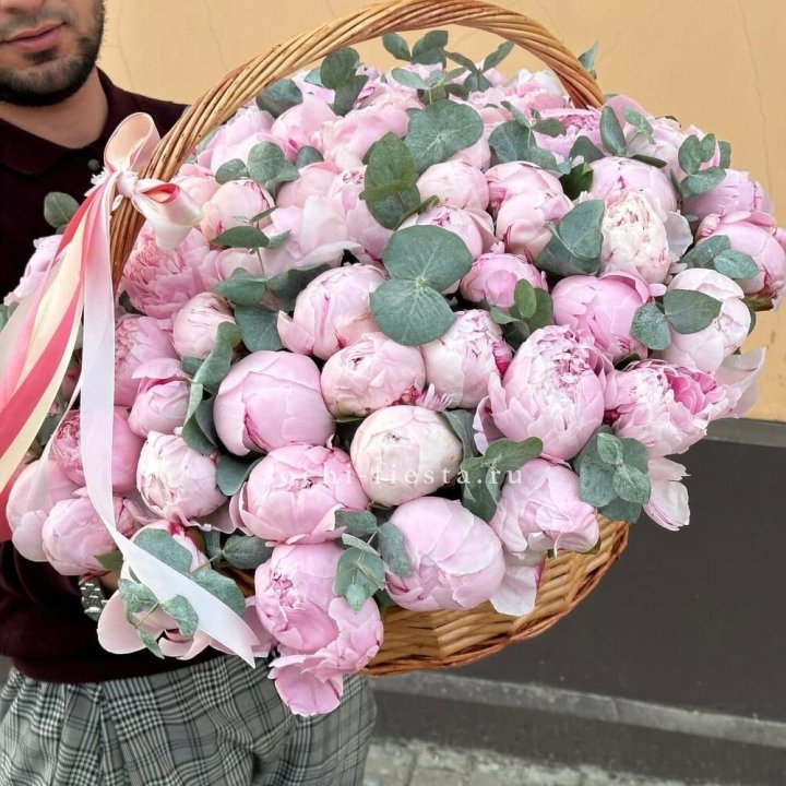 Состав корзин в Дзержинске определяется текущими поставками и сезоном. Розы Freedom, Mondial, Cappuccino — для классических куполообразных аранжировок. Пионы в мае-июне из свежих поставок: Sarah Bernhardt, Red Charm, Bowl of Cream — главный сезонный продукт. Хризантема, альстромерия, гербера — для объёмных торжественных наполнений. Эустома, ранункули — для садовых корзин. Флорист строит состав под конкретный запрос.