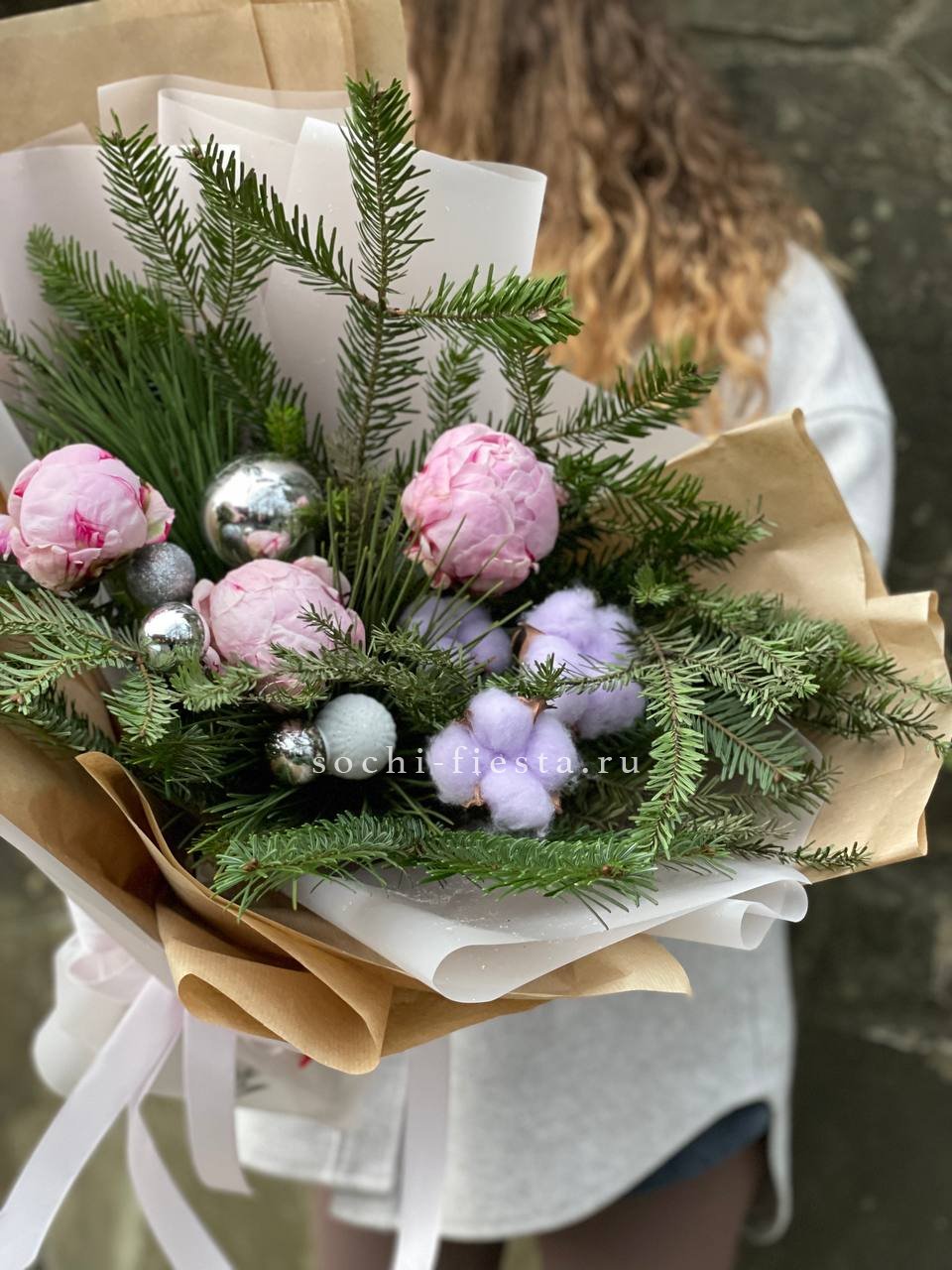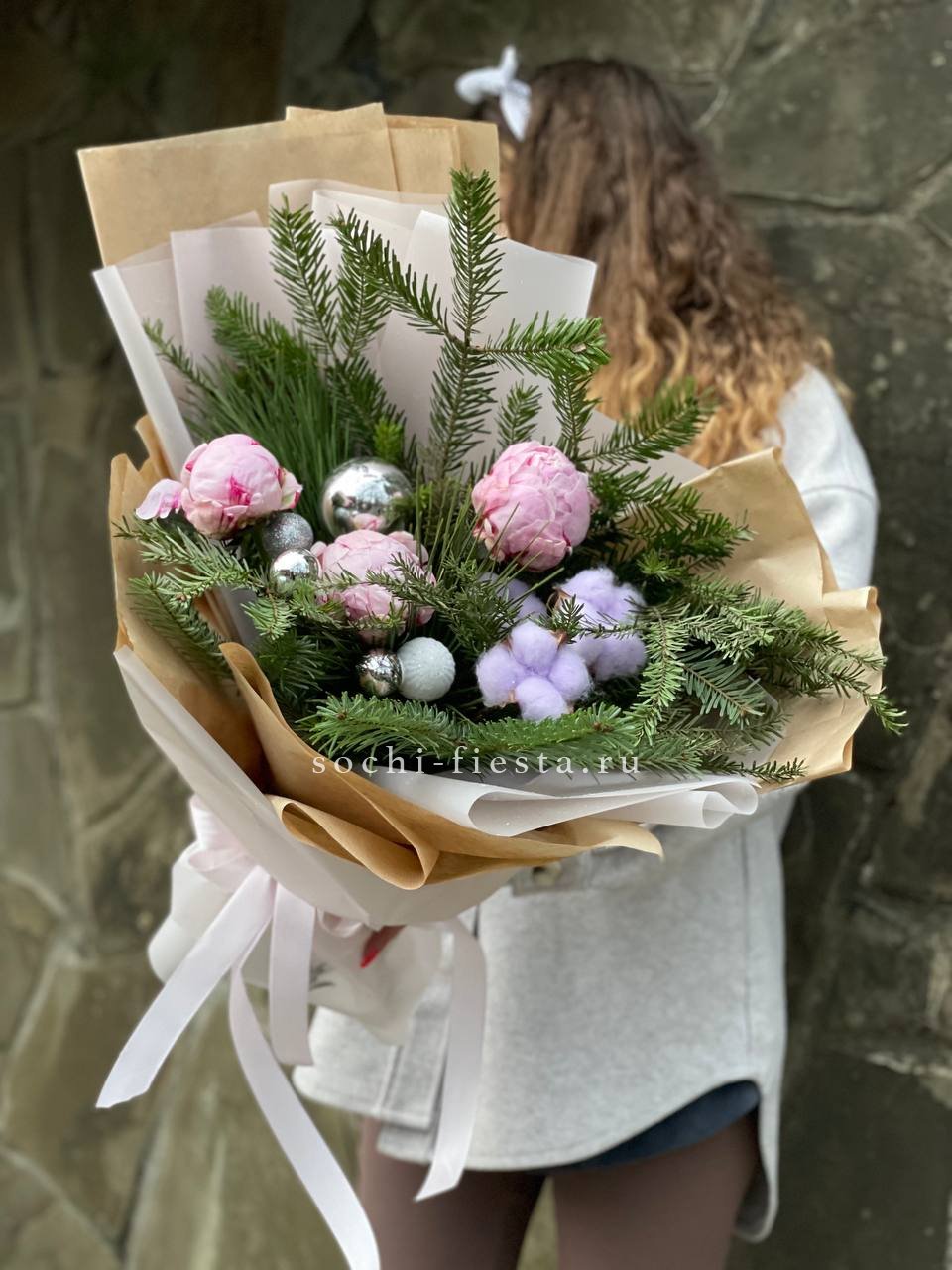 Новогодний букет с пионами