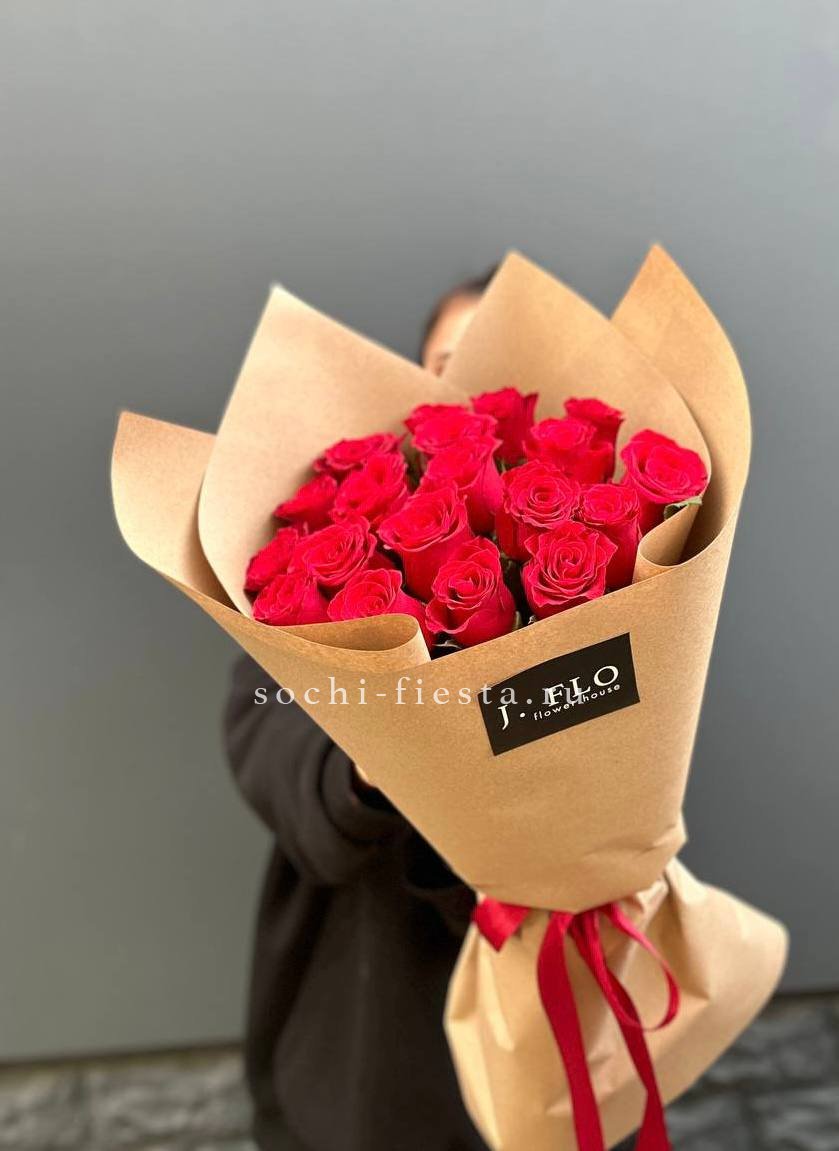 Состав букета на фотографии: розы Lullaby - 25 шт., лента, дизайнерская упаковка