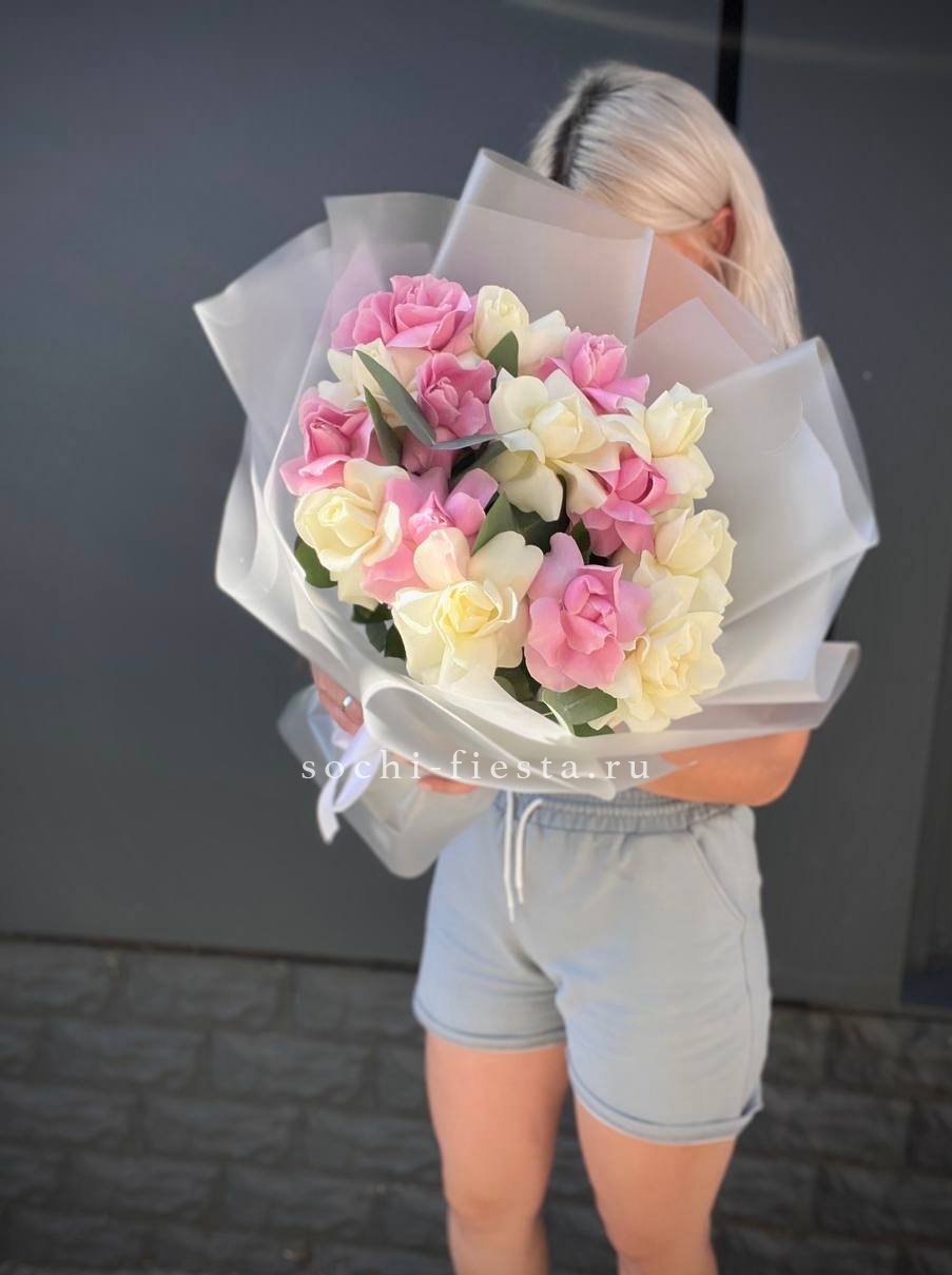 Для заказа товара "15 бело-розовых роз" с доставкой в Дзержинске нажмите в корзину