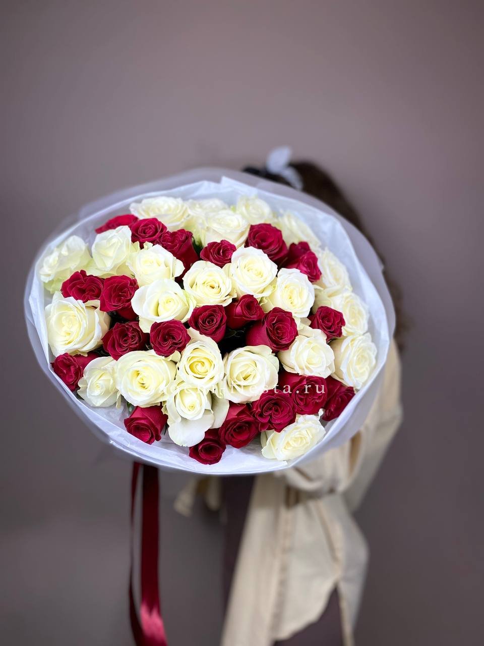 Для заказа товара "Букет из красных белых 45 роз" с доставкой в Дзержинске нажмите в корзину
