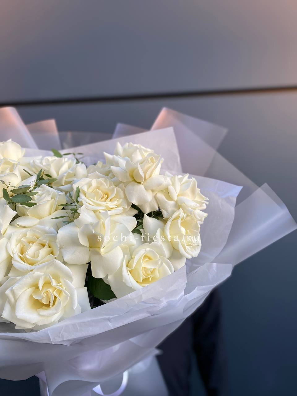 Пышный букет из белых роз