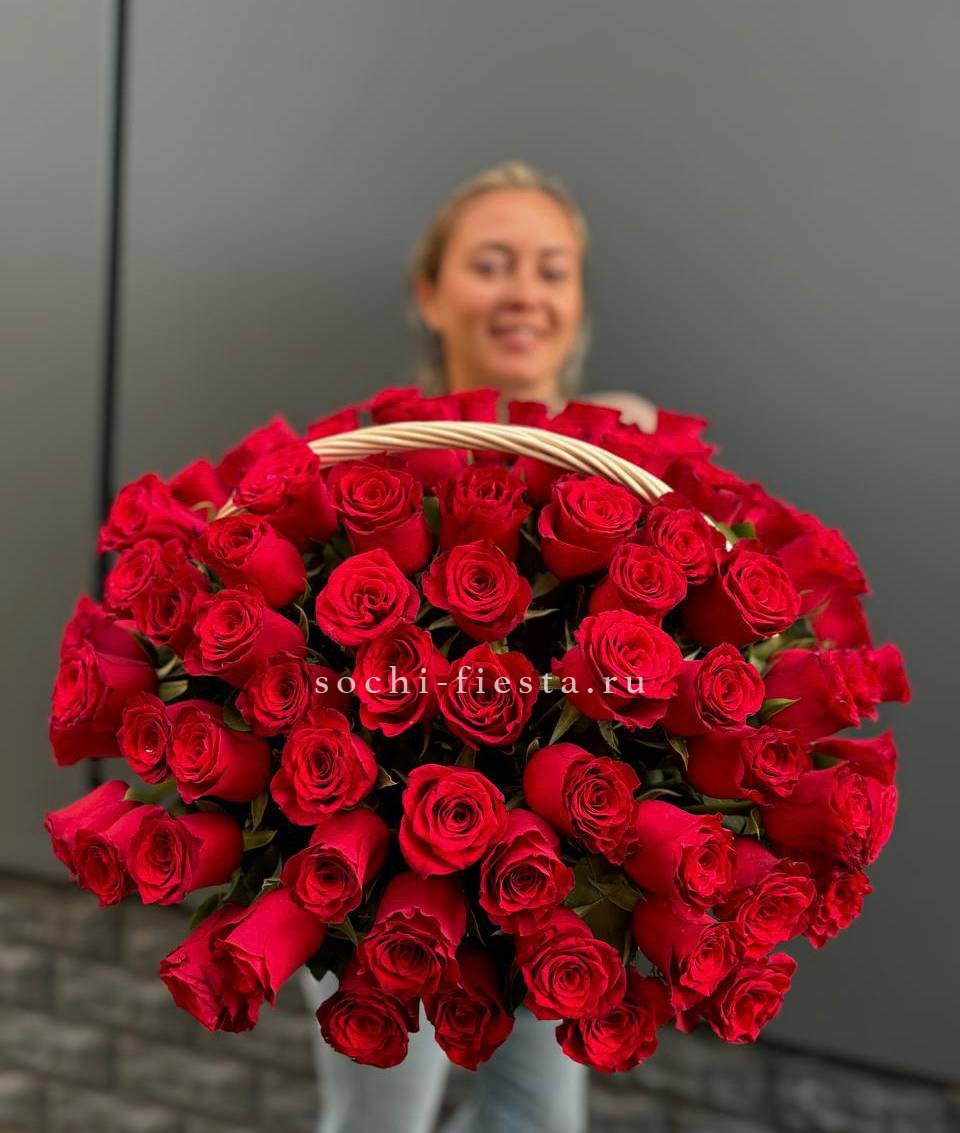 101 красная роза, корзина.