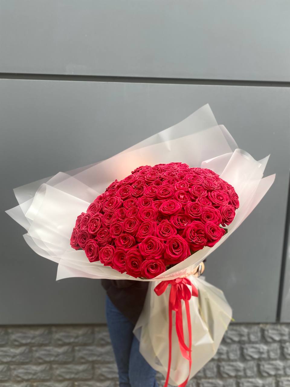 Букет из 101 высокой красной розы — это символ абсолютной преданности, роскоши и глубоких чувств. Такая композиция считается непревзойденным подарком для самых значимых моментов в жизни.