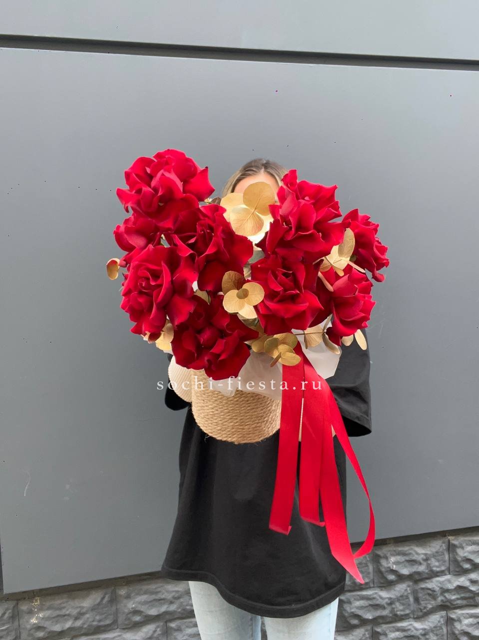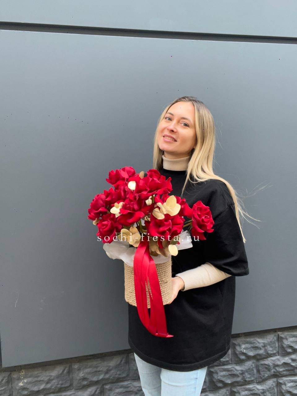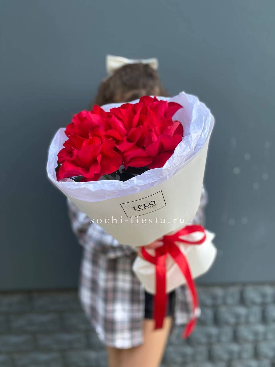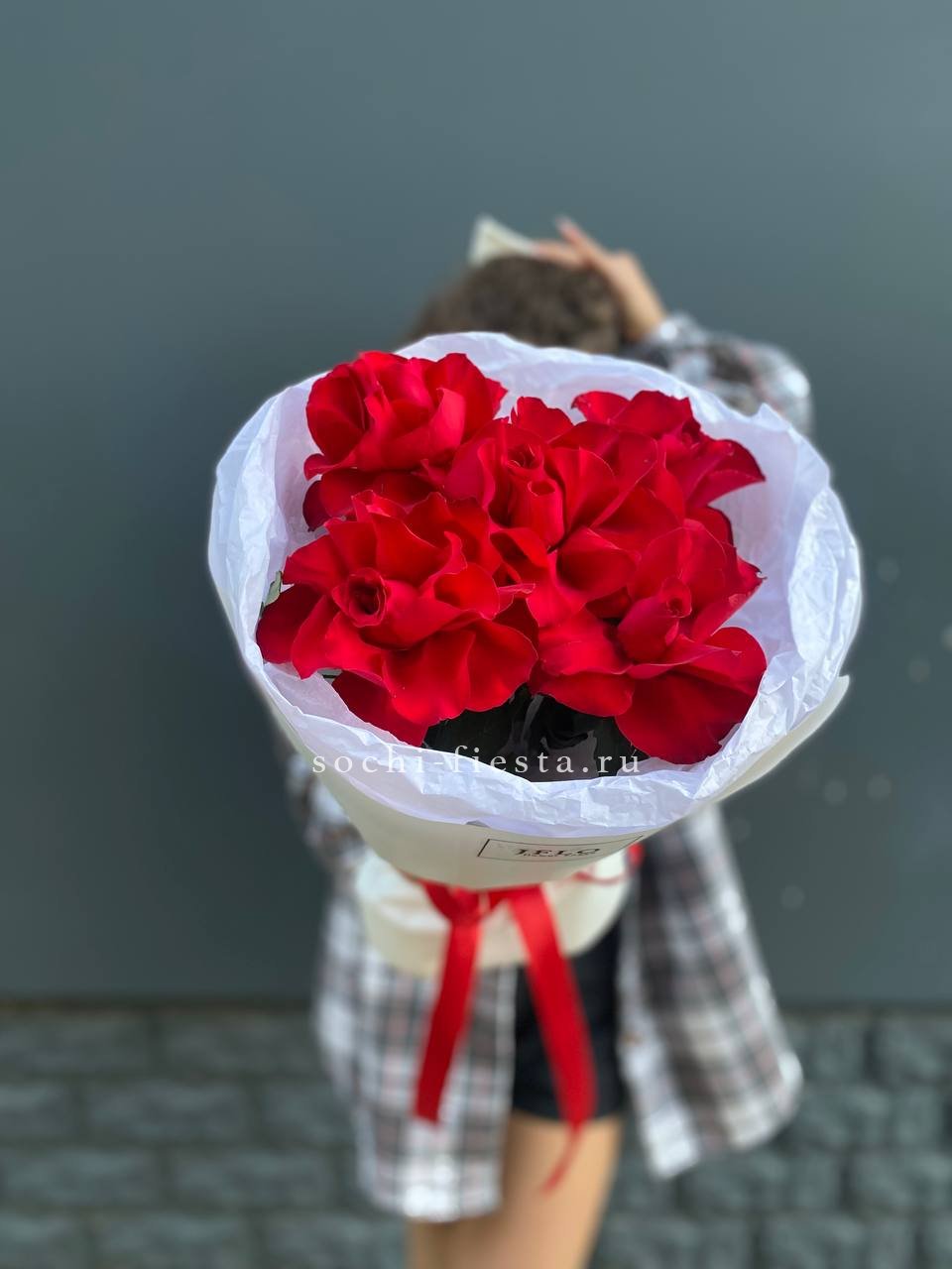 Пять французских роз в лаконичном оформлении — это чистота линий и выразительность каждого бутона. Компактная форма сохраняет свежесть и аккуратность надолго.