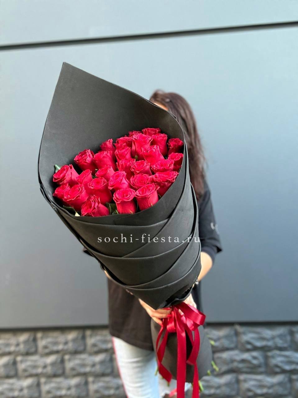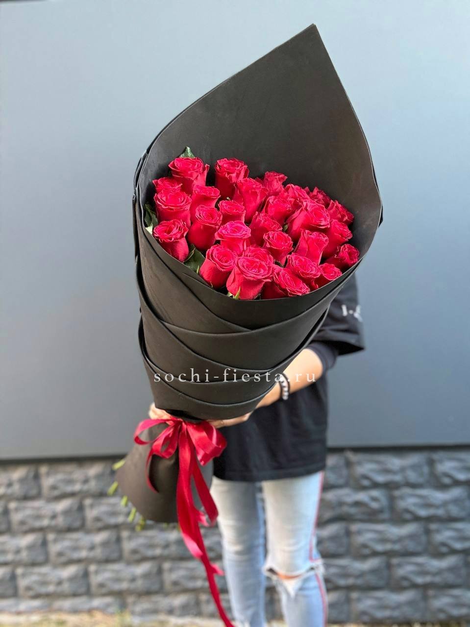 Red Naomi в графичной упаковке BLVCK — это игра между классическим красным и современной подачей. Плотные бутоны раскрываются медленно, сохраняя форму и насыщенность цвета.