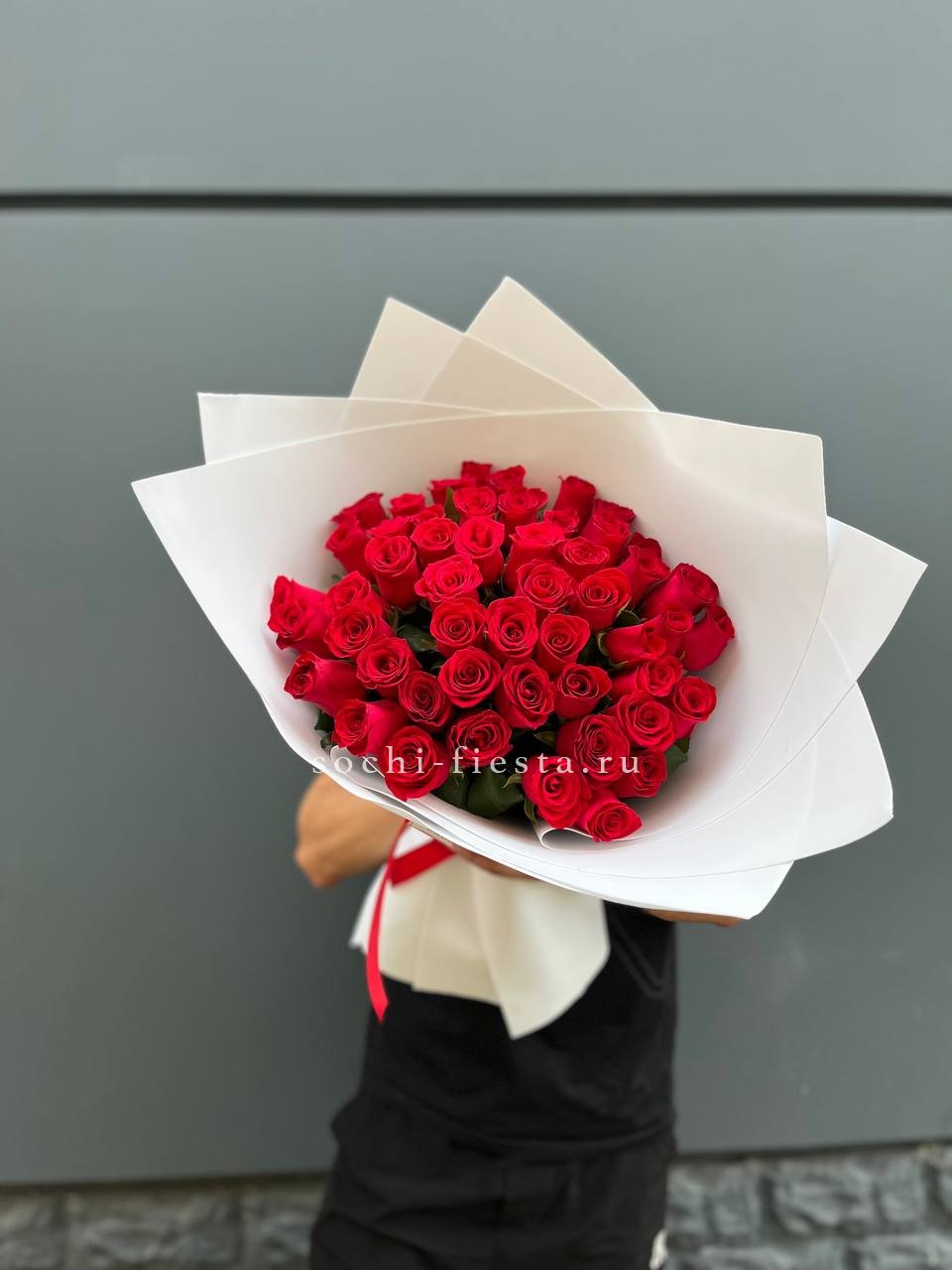 51 красная роза, фоамиран, лента.