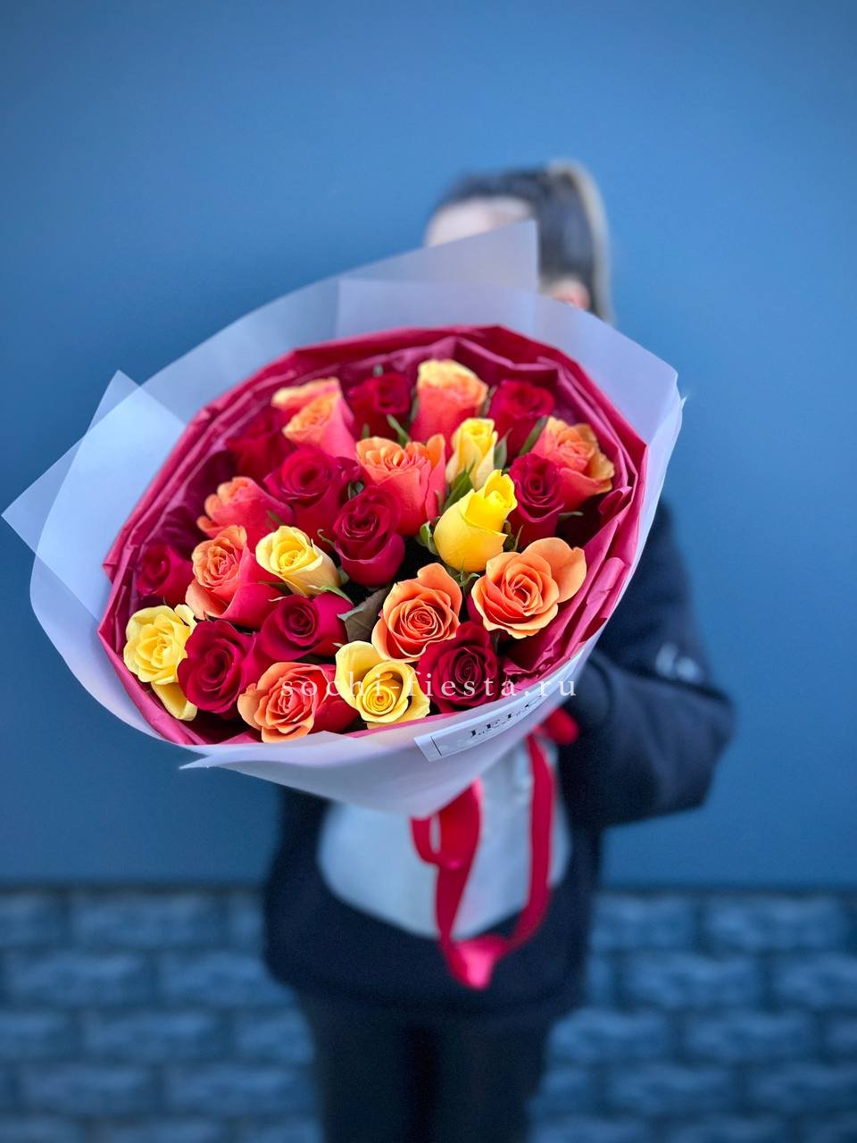 Мы работаем только со свежими цветами — букеты радуют от 7 до 14 дней и дольше при правильном уходе.