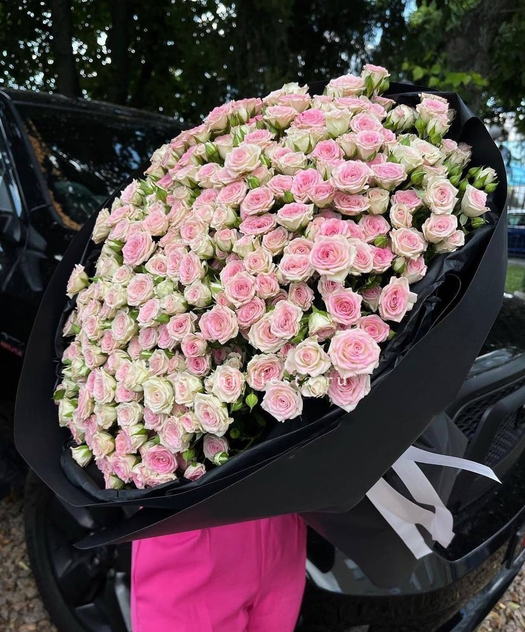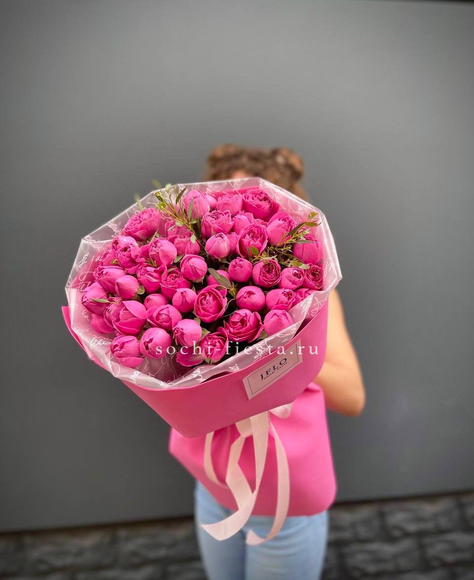101 кустовая роза Twister, лента, упаковка.