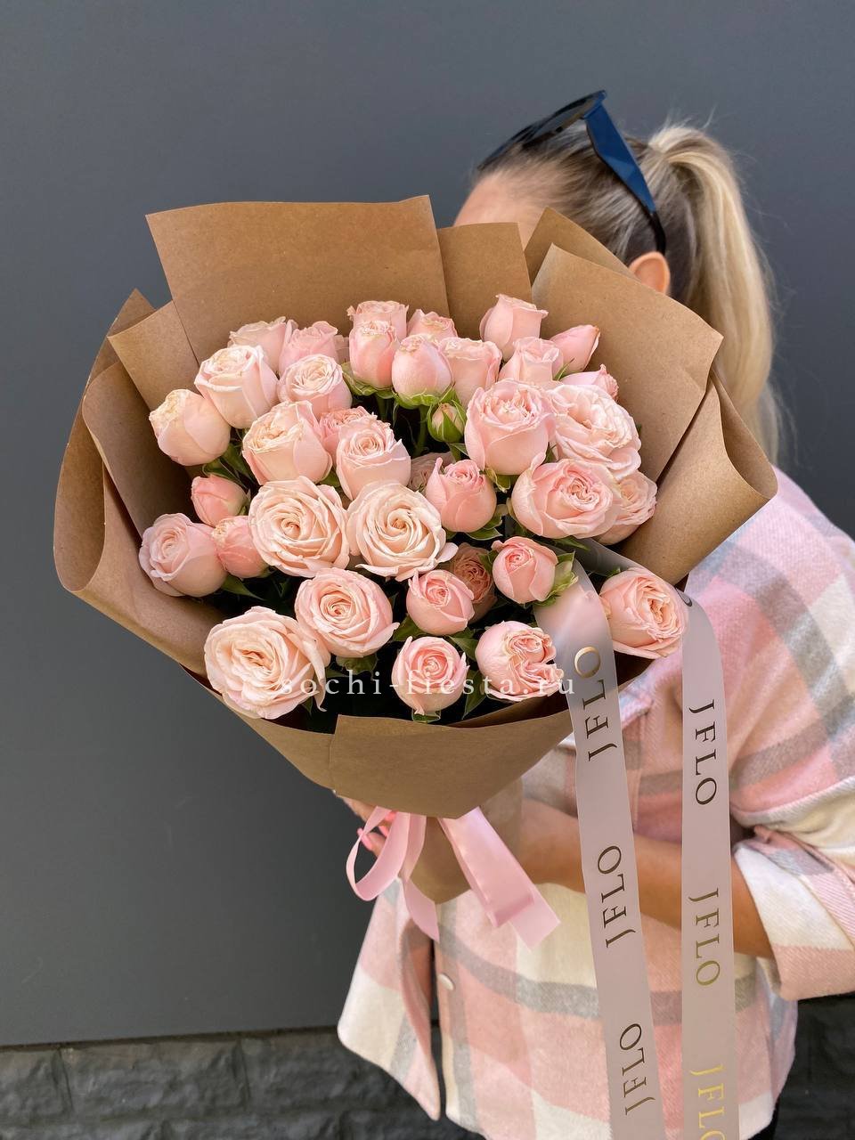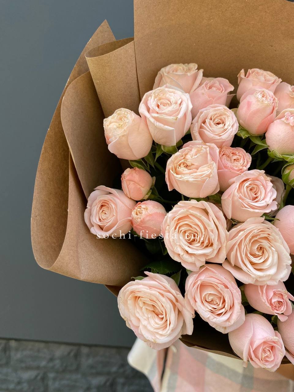 Для заказа товара "Кустовые розы Бомбастик в крафте" с доставкой в Дзержинске нажмите в корзину