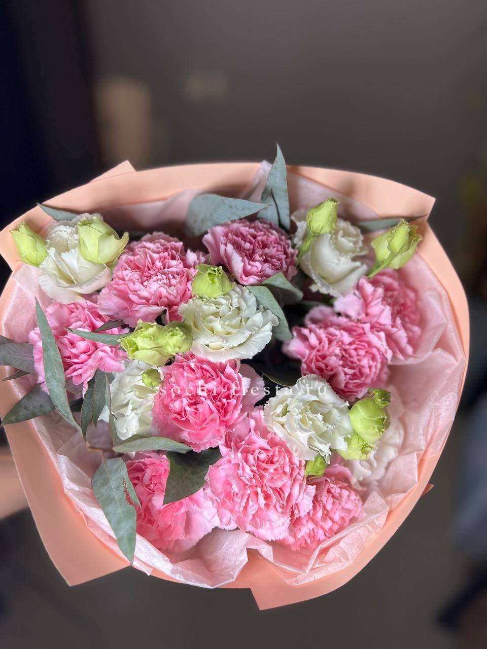 Для заказа товара "Букет гвоздик и эустом "Сири"" с доставкой в Дзержинске нажмите в корзину