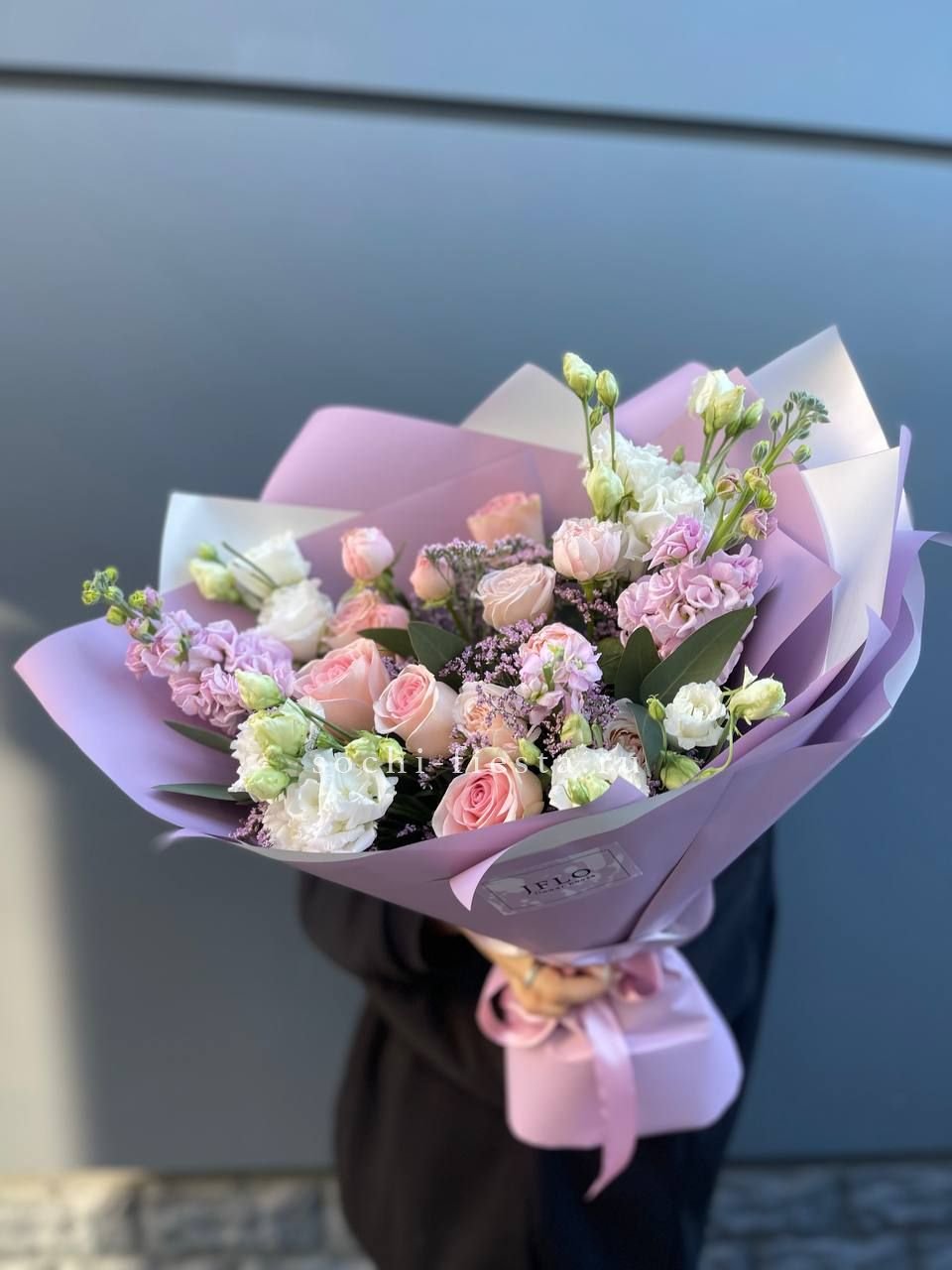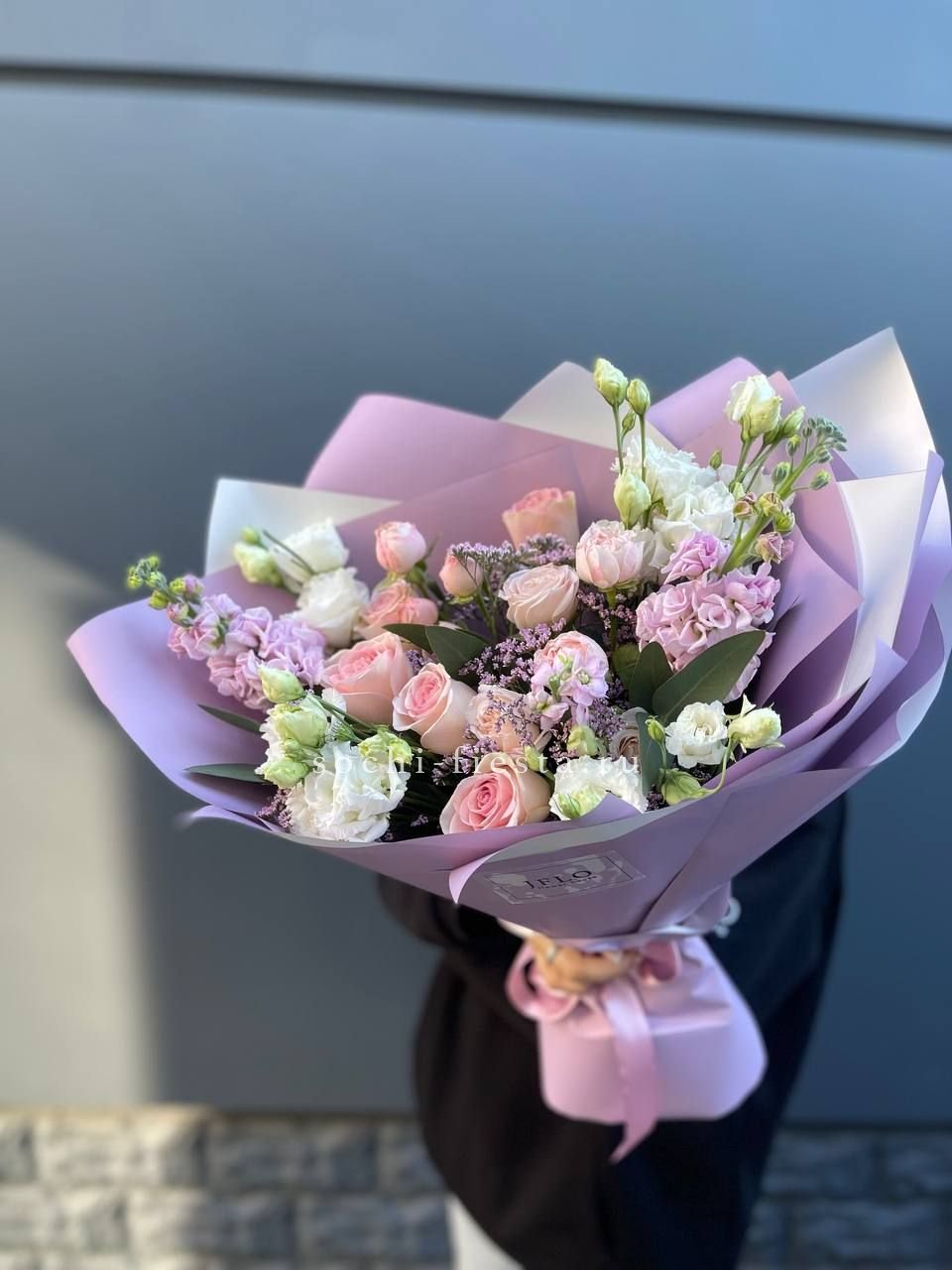 Пышные розовые бутоны переплетаются с воздушной эустомой, создавая объёмную композицию с мягкими переходами оттенков. Микс раскрывается постепенно, удерживая свежесть и форму долгое время. Универсальное решение для самых разных поводов.